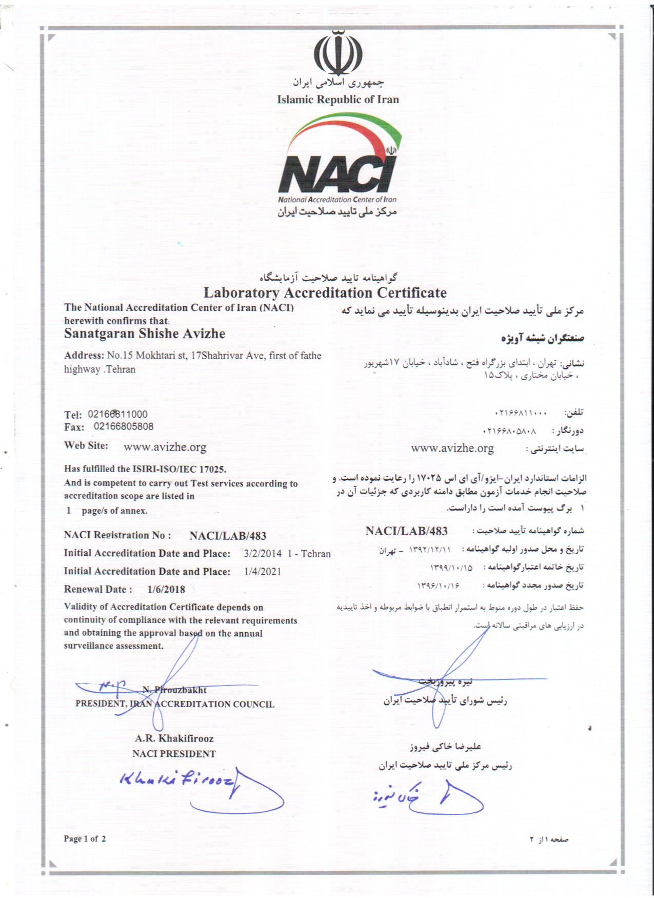 گواهینامه، certificate،سرتیفیکیت،ASTM،اساسنامه،استاندارد،دفاعی،ایران،کالیبره،عدم قطعیت،تایید صلاحیت